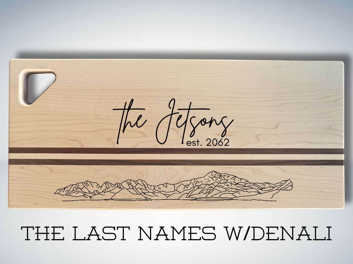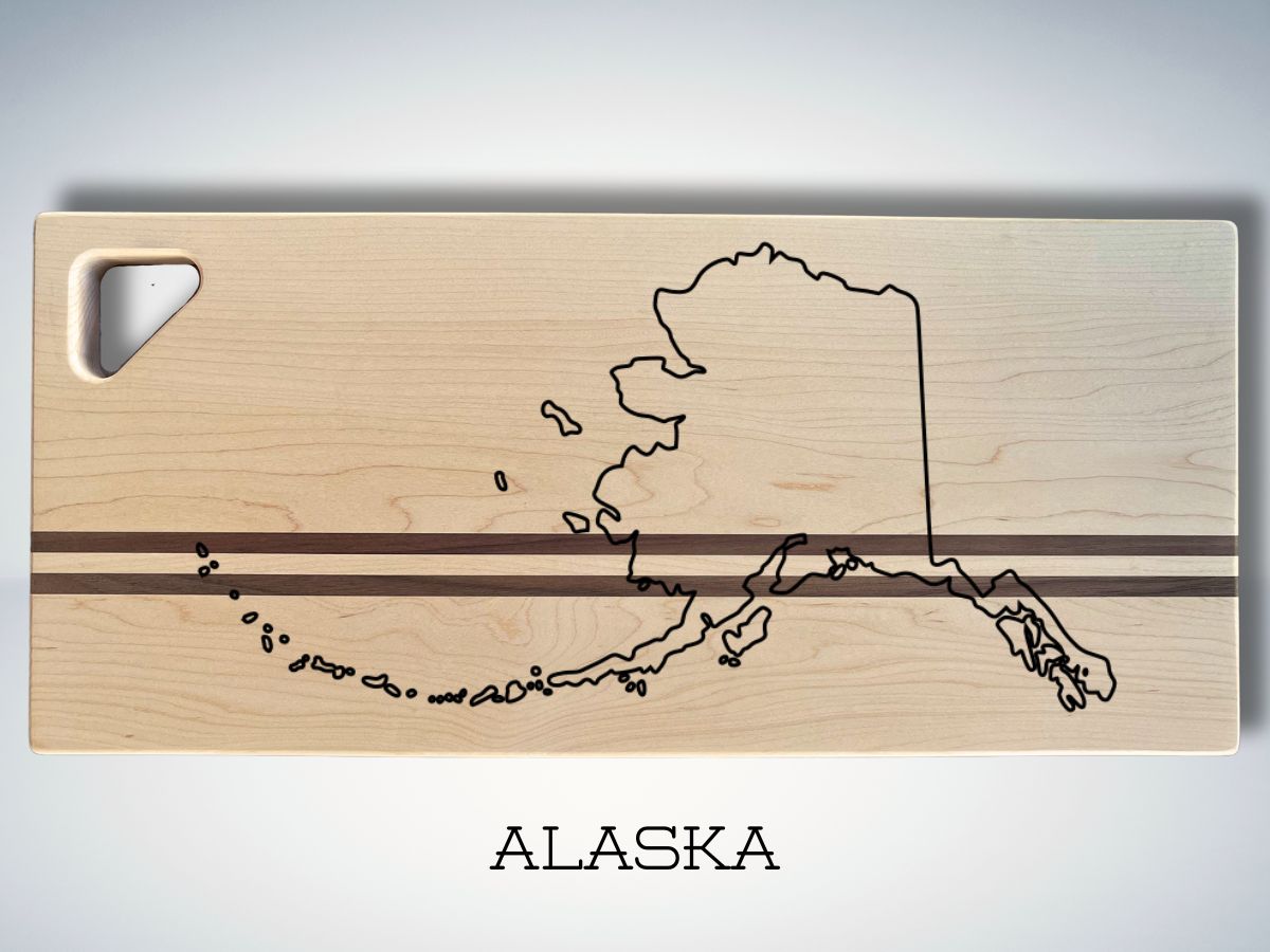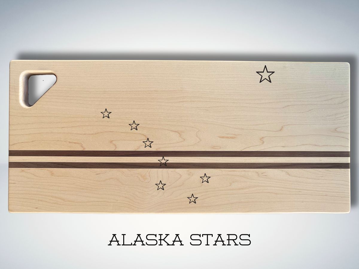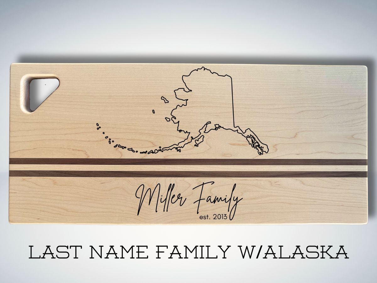 Our handmade Alaskan charcuterie & serving boards make the perfect addition to your next gathering! Each board is crafted start to finish in our home - attention to detail shines through in each step of the process, from the hand-routed edges to the multiple applications of food-grade finish.