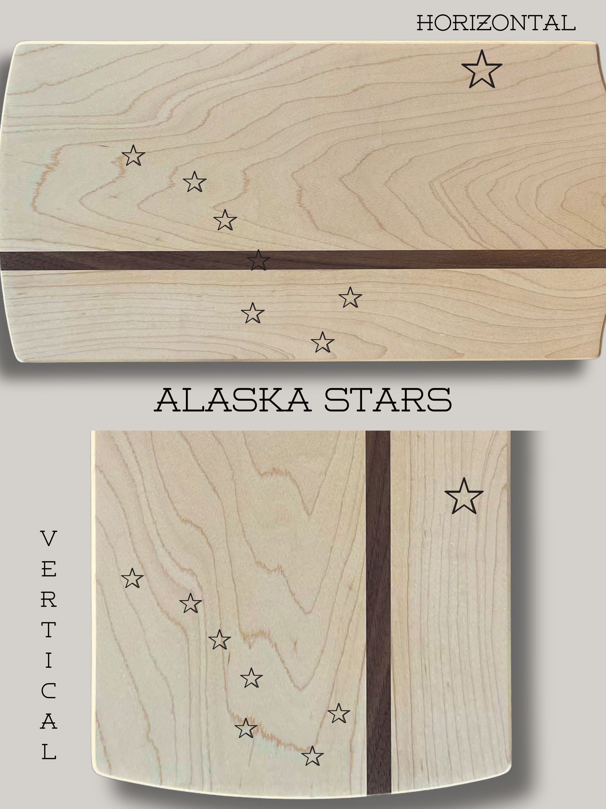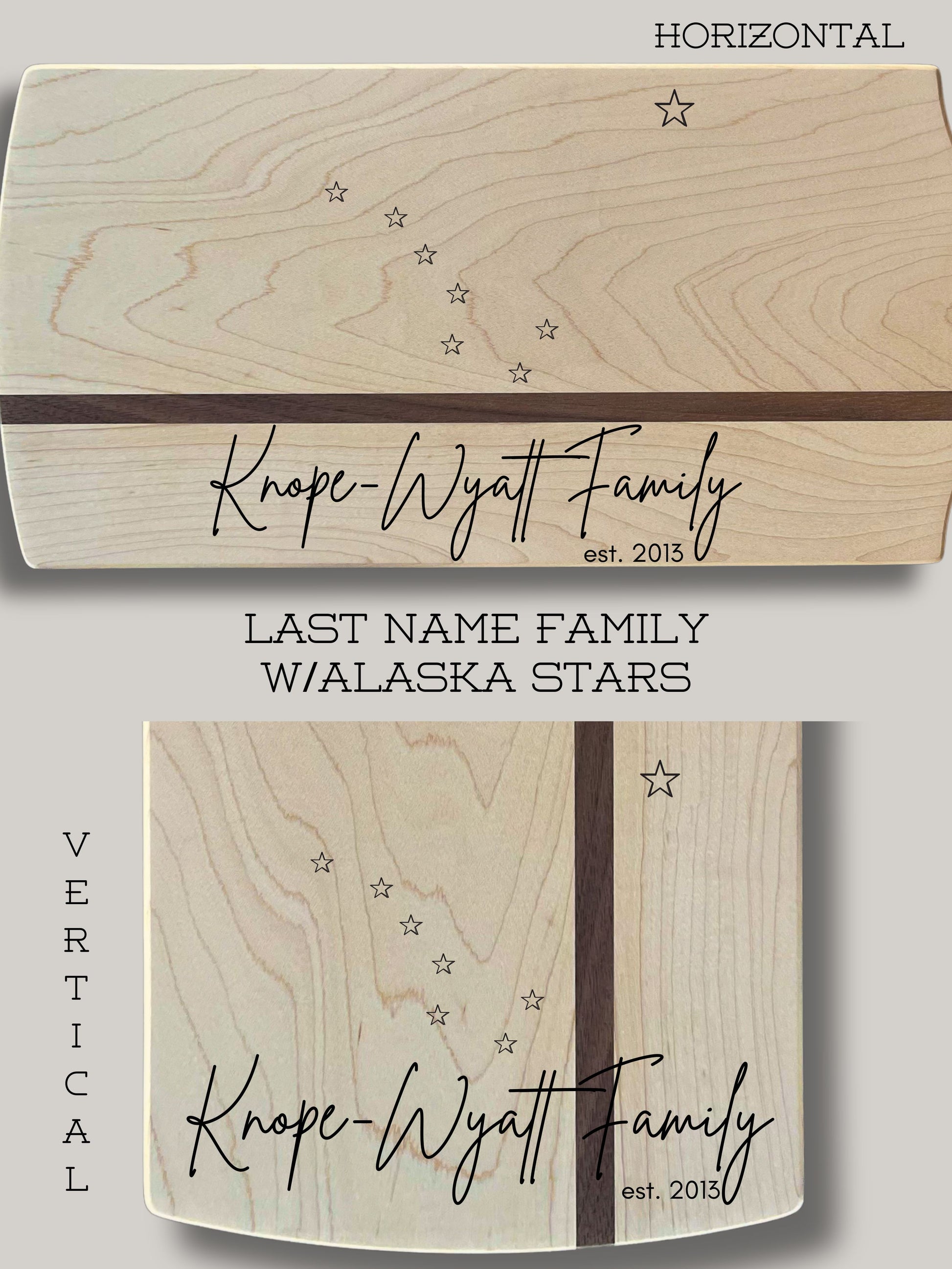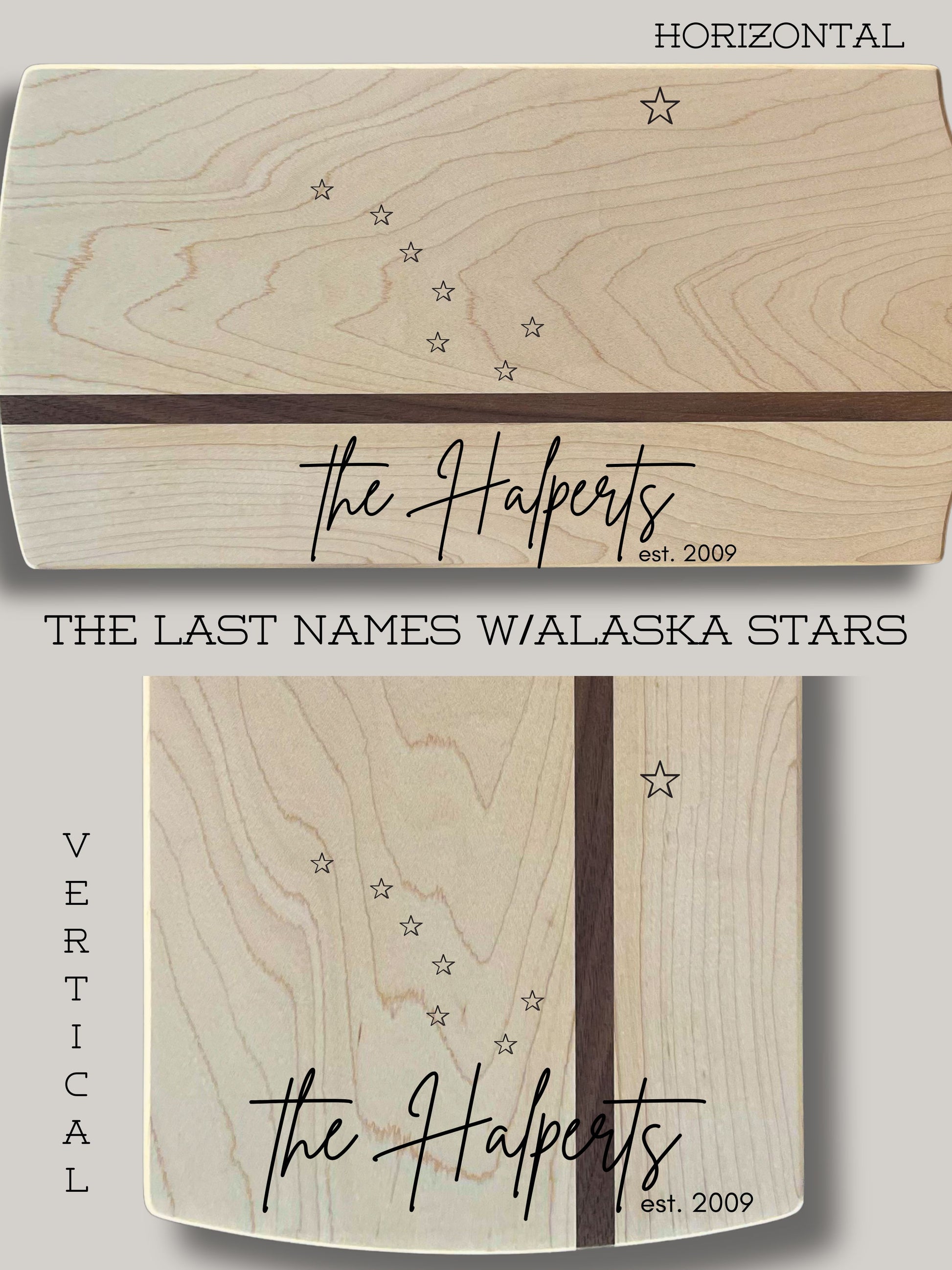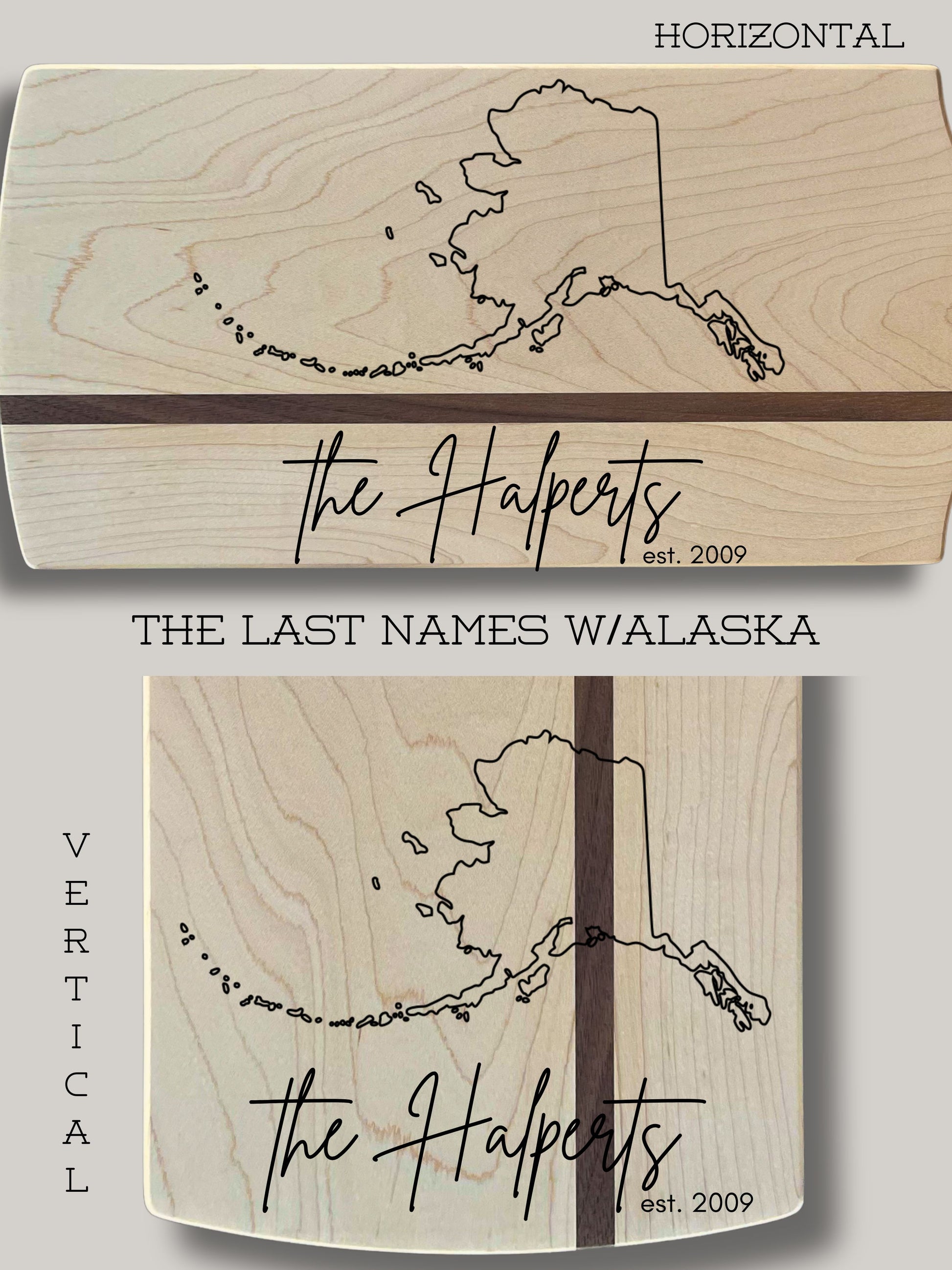 Our handmade Alaskan charcuterie & serving boards make the perfect addition to your next gathering! Each board is crafted start to finish in our home - attention to detail shines through in each step of the process, from the hand-routed edges to the multiple applications of food-grade finish.
