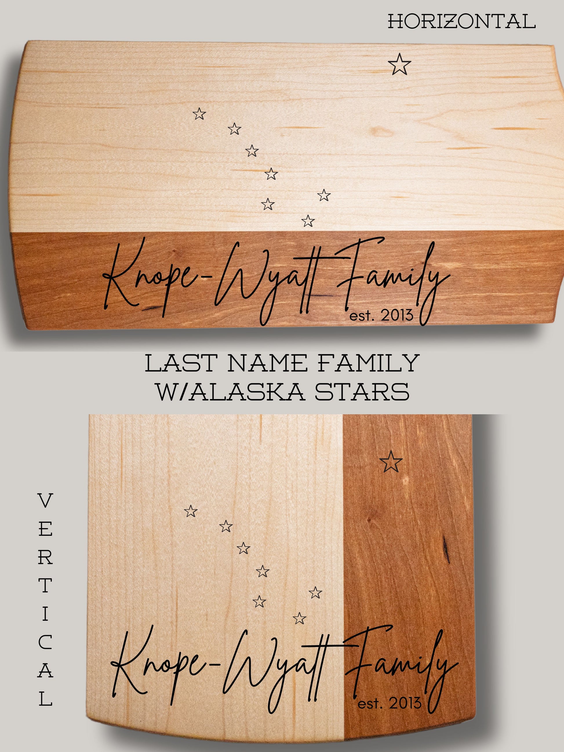 Our handmade Alaskan charcuterie & serving boards make the perfect addition to your next gathering! Each board is crafted start to finish in our home - attention to detail shines through in each step of the process, from the hand-routed edges to the multiple applications of food-grade finish.